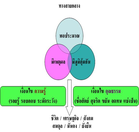ประเทศไทยในระยะต่อไป แม้ว่าวิกฤตเศรษฐกิจที่เกิดขึ้นในขณะนี้อาจจะเป็นสิ่งที่ไม่สามารถหลีกเลี่ยงได้แต่ผลกระทบต่าง ๆ จะไม่รุนแรงมากนักถ้าหากทุกภาคส่วนของสังคมมีการดำเนินกิจกรรมทางเศรษฐกิจโดยยึดหลักความพอดีกับศักยภาพของตนเอง บนพื้นฐาน