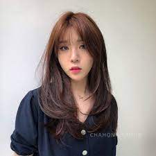 ผมยาวมีหน้าม้าปัดข้างแบบหวาน ๆ