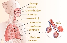 2. การหายใจออก (EXPIRATION) กะบังลมจะเลื่อนสูง กระดูกซี่โครงจะเลื่อนต่ำลง ทำให้ปริมาตรของช่องอกลดน้อยลง ความดันอากาศในบริเวณรอบ ๆ ปอดสูงกว่าอากาศภายนอก อากาศภายในถุงลมปอดจึงเคลื่อนที่จากถุงลมปอดไปสู่หลอดลมและออกทางจมูก